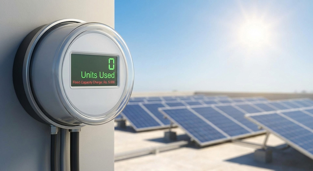 - You Import: You buy electricity at night at the full tariff (approx. Rs. 50–60 including taxes).